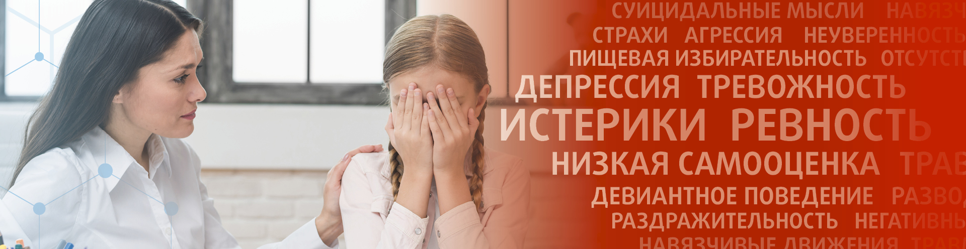 Помощь специалиста нужна при встрече с неприятностями, стрессовыми факторами. Такие ситуации, как развод родителей, смена места проживания или школы могут травмировать подростка, привести к проблемам с общением, управлением эмоциями. В нашей клинике подростковые психологи работают не только с поведением, но и со сложными нервными патологиями:
